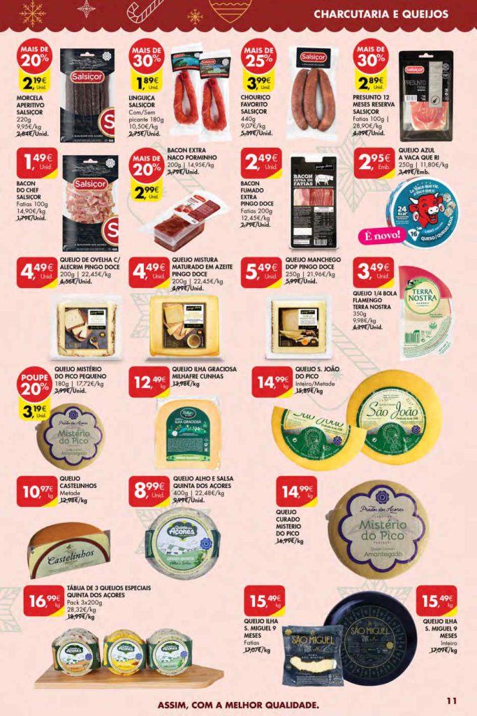 Os destaques mostram reduções fortes em produtos selecionados. Folheto Pingo Doce Açores 11 a 17 de dezembro,