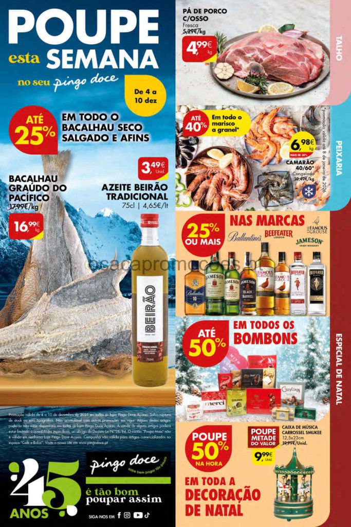 O novo folheto chega com várias reduções fortes em mercearia, frescos e produtos da casa. Folheto Pingo Doce Açores 4 a 10 de dezembro,