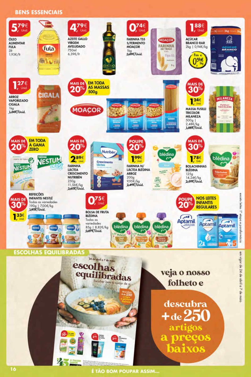 As promoções e descontos para a lista de compras. Destaques campanha 1 de maio e mais oportunidades para poupar. Pera rocha a 2,29€/kg, fritadeira de ar digital ROBIN FOOD a 39,99€/unidade, farinha fina BRANCA de NEVE a 0,89€/embalagem, abacaxi a 1,69€/kg, chocolate sortido MERCI a 3,99€/embalagem, óleo alimentar FULA 3 litros a 5,74€/embalagem e mais. Atenção nos descontos em detergentes e preço por dose. Boas Poupanças! Comparem. Todo o folheto Abaixo! ??