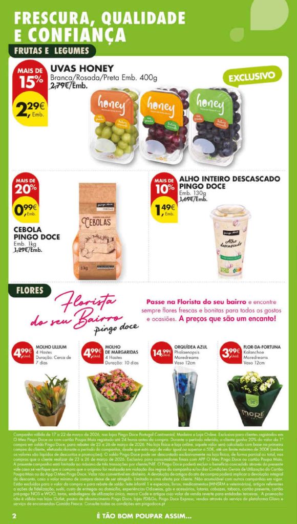 A Antevisão em primeira mão com todas as promoções. Folheto Pingo Doce 17 a 23 de março.