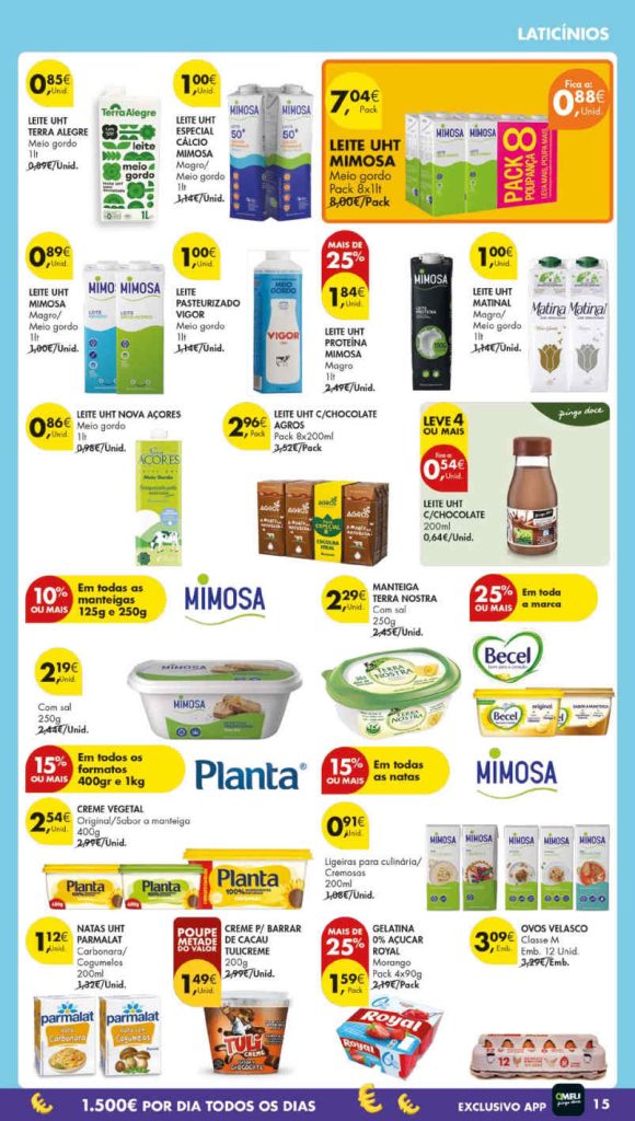 Destaco leite UHT Terra Alegre meio gordo a 0,85€ unidade,