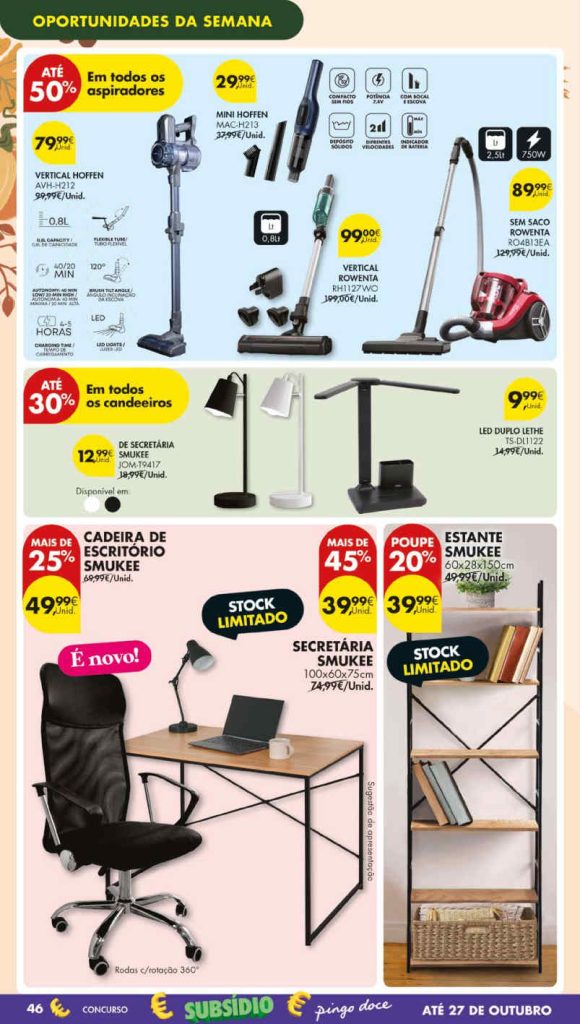 Em destaque secretária Smukee a 39,99€ unidade e mais bazar,