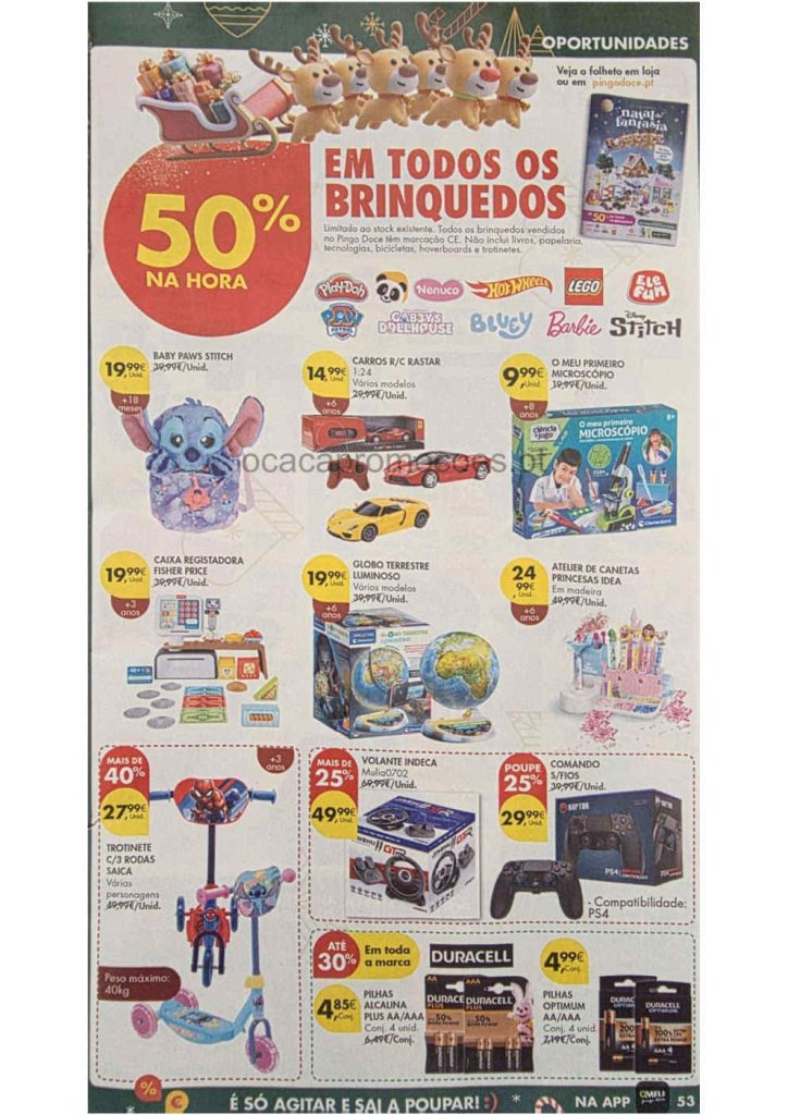Destaco 50% desconto em todos os Brinquedos,