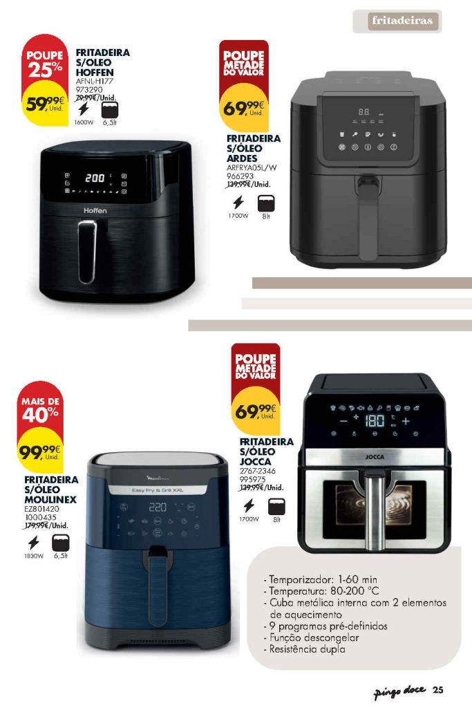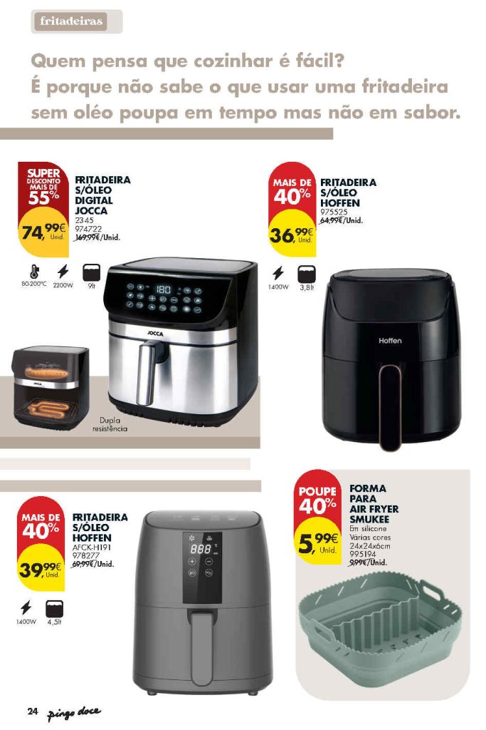 Fritadeira sem óleo Jocca a 74,99€ e mais,