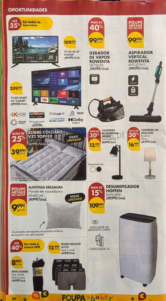 A antevisão em primeira mão aqui no O Caça Promoções para comparar e poupar esta semana. Amanhã estarei em loja a analisar os descontos e ofertas nas várias categorias. Novos avistamentos serão partilhados. Destaques bazar até 50% desconto direto em tecnologia, conforto, limpeza. Façam a vossa lista de compras e usem a app My Pingo Doce para otimizar a poupaança. Consultem os Folhetos. Todo o Folheto Abaixo!🎯