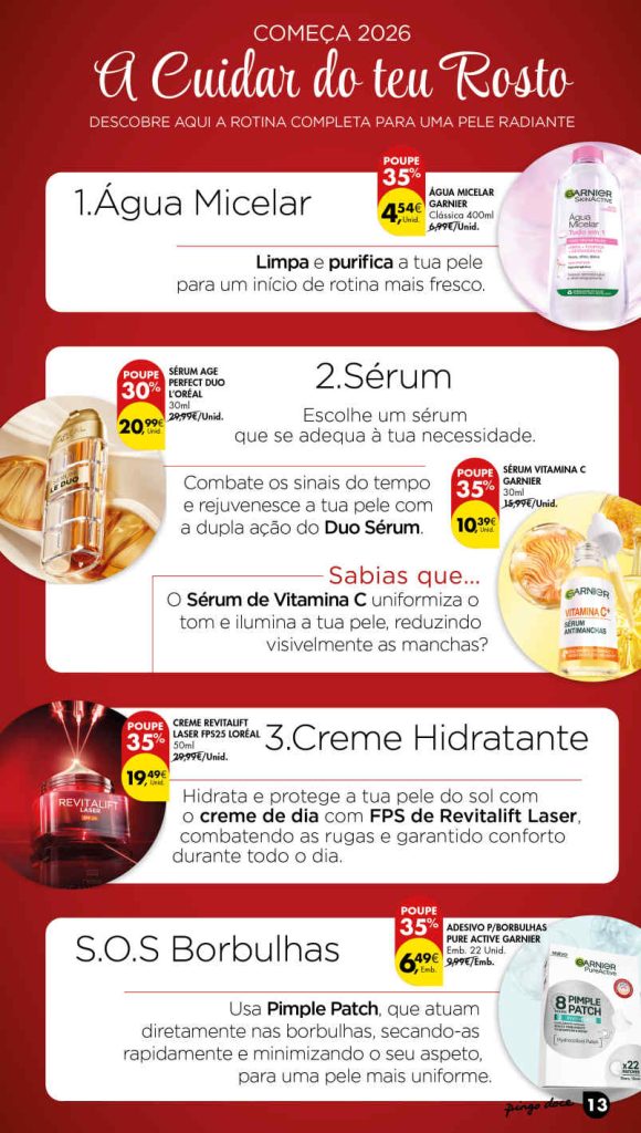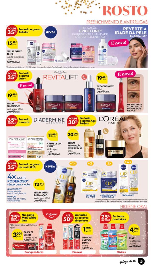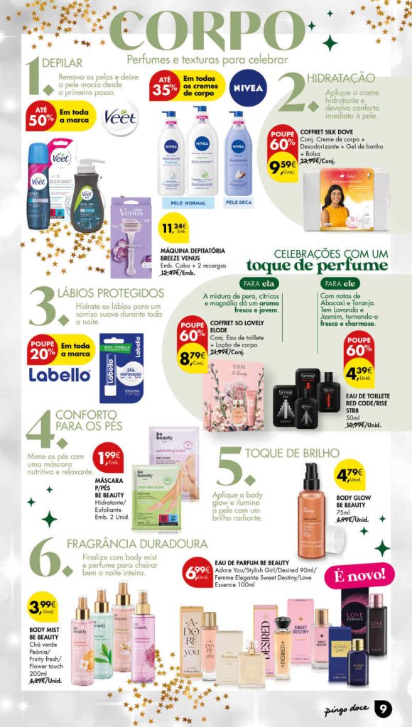 As páginas incluem destaque para produtos beleza com preço mais baixo. Folheto Pingo Doce Beleza 16 dezembro a 5 janeiro,