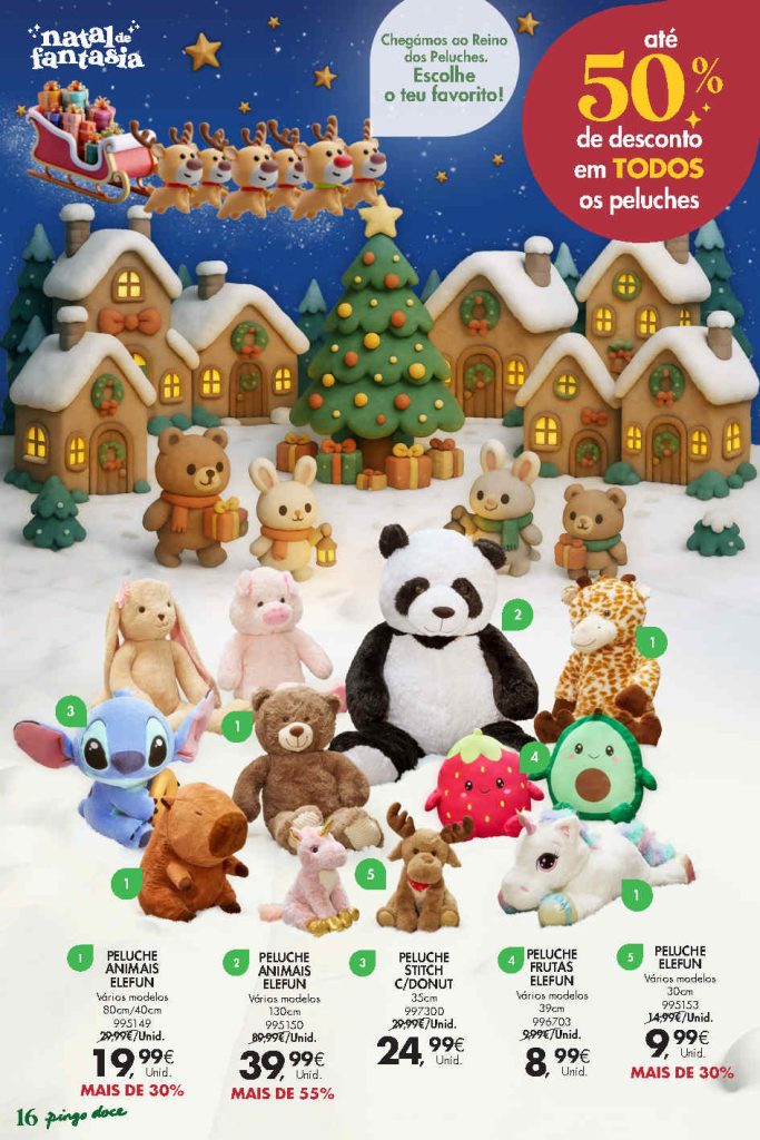 Destaco até 50% em todos os peluches,