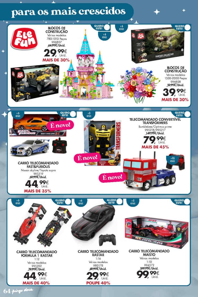 Brinquedos para todos os gostos. Folheto Pingo Doce Brinquedos Lojas Hiper Natal 18 novembro a 5 janeiro,