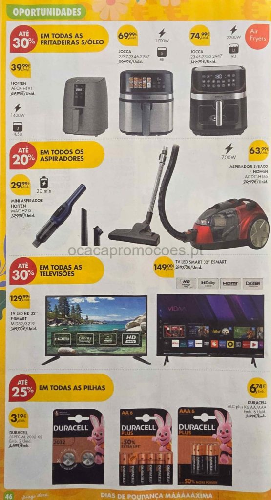 Os artigos cozinha, imagem, aspiração e utilitários para poupar esta semana.