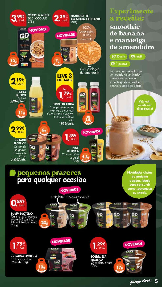 Novas promoções e descontos em mais uma antevisão folheto PINGO DOCE exclusiva. São mais de 250 artigos a preços baixos para uma alimentação equilibrada. Marcas como Cem Porcento, Pingo Doce, Activia, Compal, Alpro e mais. Tofu biológico a 1,39€/embalagem, gelado proteico a 2,99€/embalagem e mais para aproveitar. Façam a vossa lista! Todo o folheto abaixo.??