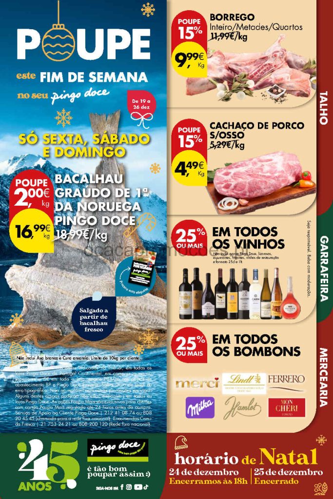 As páginas trazem várias oportunidades interessantes em alimentação e bazar. Folheto Pingo Doce 19 a 26 de dezembro,