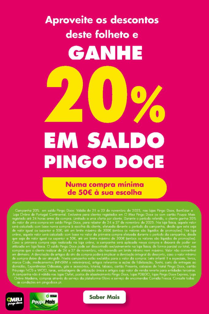Promoções e descontos fim de semana em alimentar, bazar já em antevisão neste folheto. As ofertas Pingo Doce estão sempre aqui no O Caça Promoções, atualizado permanentemente com todas as noticias para poupar. Aproveite 20% em saldo Pingo Doce. Consultem os Folhetos. A Antevisão Folheto!🛒