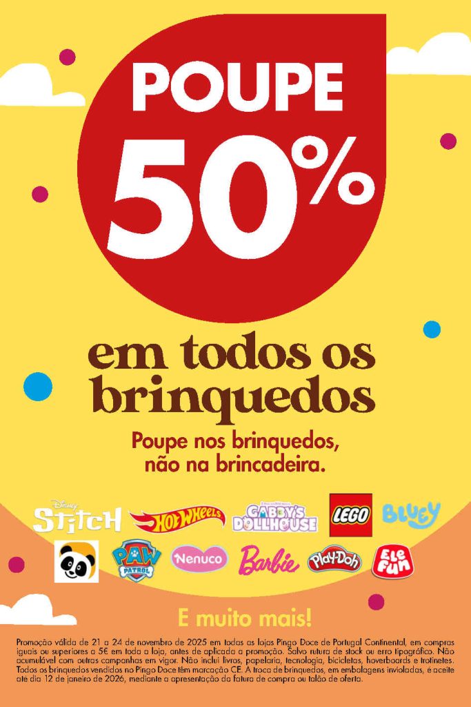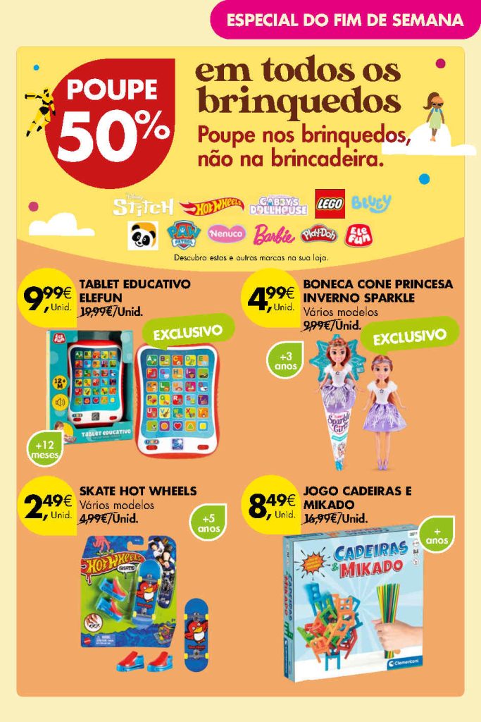 50% desconto em todos os brinquedos e mais,