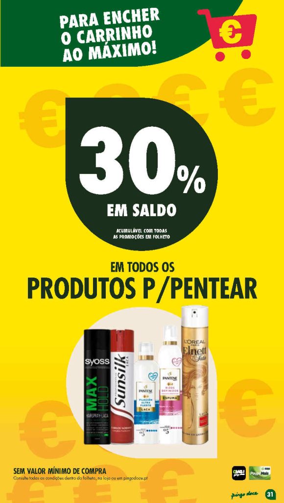 30% desconto saldo cartão em azeites / produtos para cabelo / carne de porco.