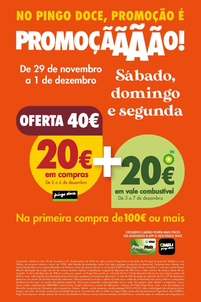 Volta a promoção 20€+20€ para acumular. Folheto Pingo Doce Fim de Semana 29 novembro a 1 dezembro,