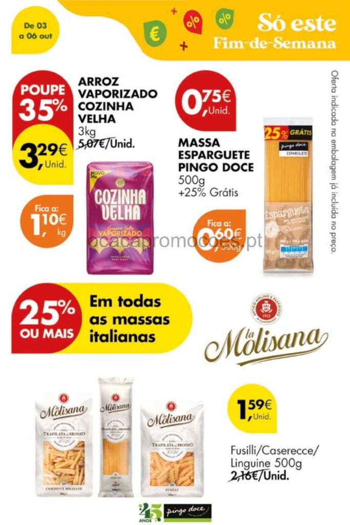 Massa esparguete Pingo Doce a 0,75€/embalagem e mais,