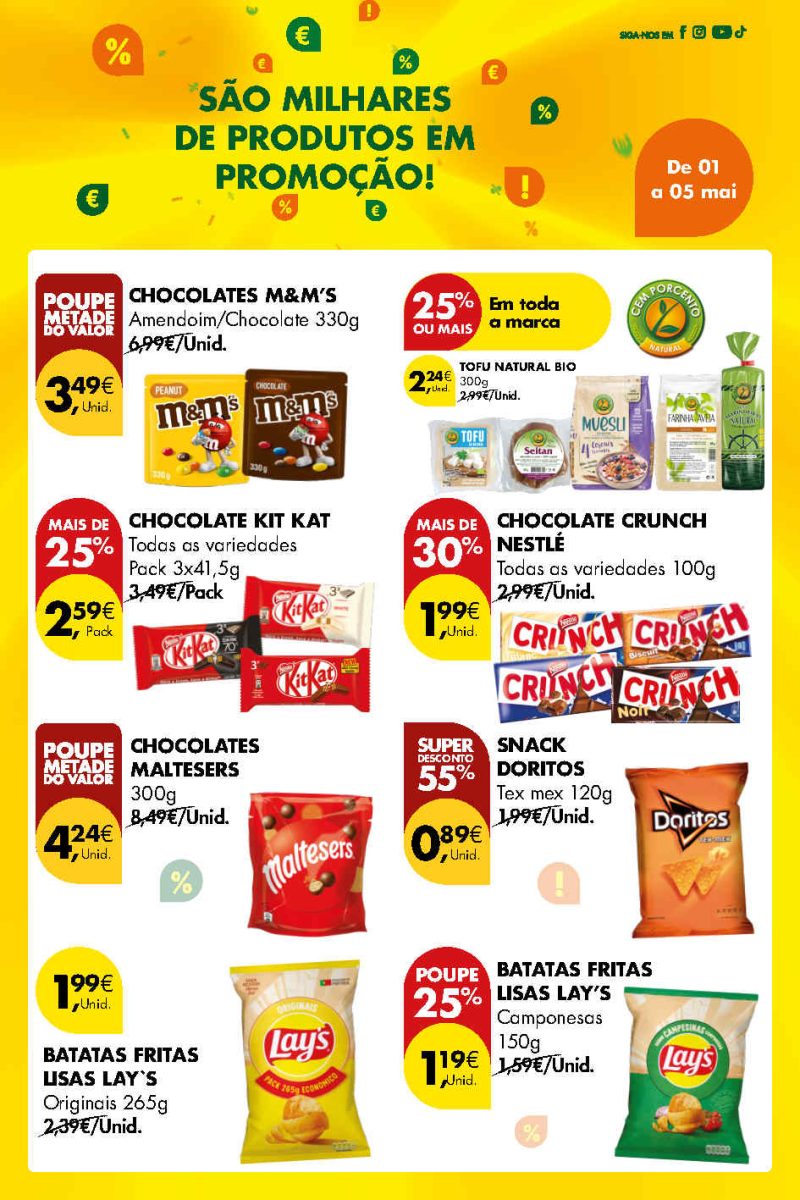 Destaques 2 de maio e mais nestes hipermercados. Façam a lista e aproveitem! Nos restantes dias as promoções assinaladas em novas 30 páginas de descontos. Dias de Máxima Poupança no PINGO DOCE! Leite UHT MIMOSA magro ou meio gordo a 0,85€/unidade, salsichas NOBRE com 50% desconto a 0,99€/embalagem, até 40% em todos os champôs e amaciadores, e muito mais para a lista fim de semana. Aproveitem! Todo o folheto abaixo.??