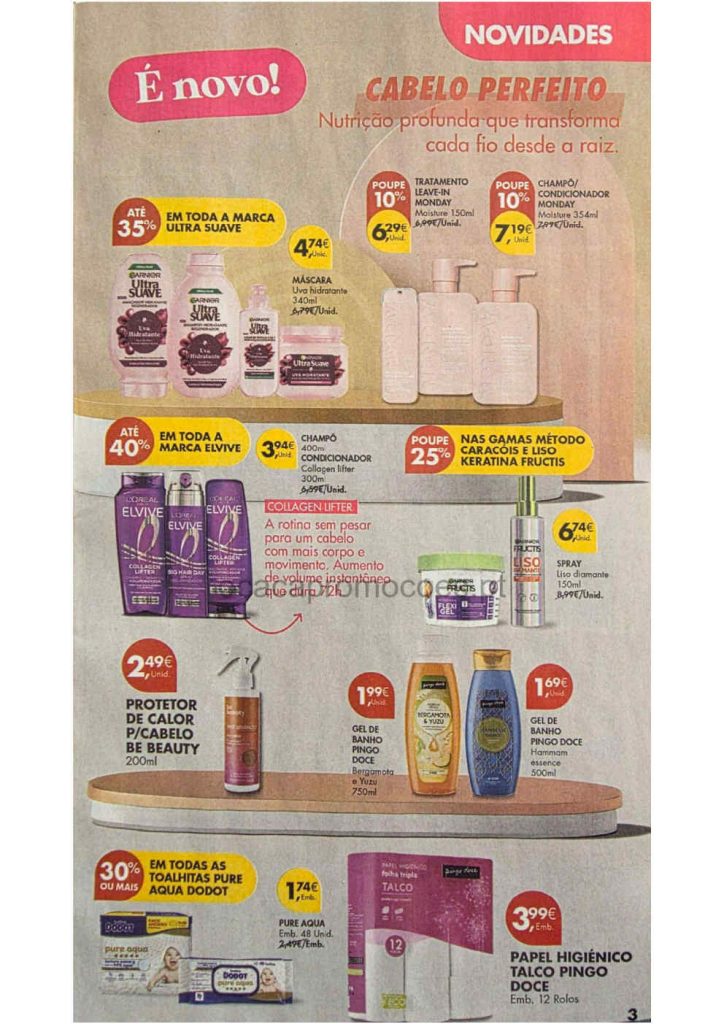 Promoções em limpeza, higiene e beleza na antevisão exclusiva deste folheto temático. Os produtos estão destacados para identificar rapidamente as oportunidades mais relevantes para as compras da semana. Aproveite e acumule com a app My Pingo Doce até 65% e tenha sempre em atenção o preço por dose.  Consultem os FolhetosA Antevisão!🎯
