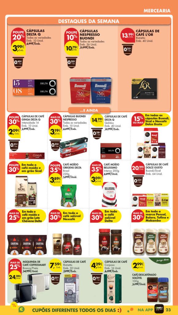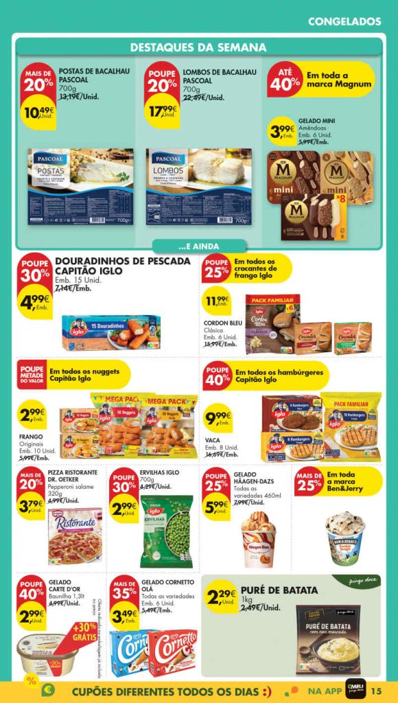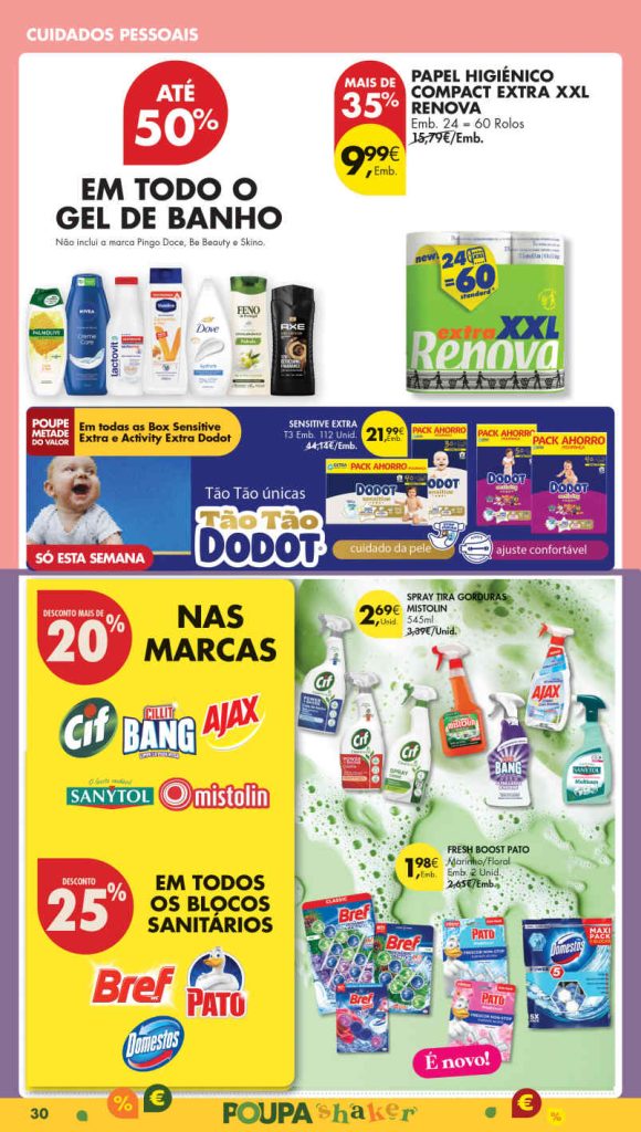 Ao usar a app My Pingo Doce vai aproveitar os 20% em cartão nas categorias assinaladas. Note que as campanhas saldo em cartão são até domingo. As categorias mercearia, frescos, limpeza, cuidados pessoais, pets e mais estão com preços mais baixos. Compare e aproveite as novidades para o carrinho de compras. Brinquedos até 50%. Consultem os Folhetos. A Antevisão Folheto!