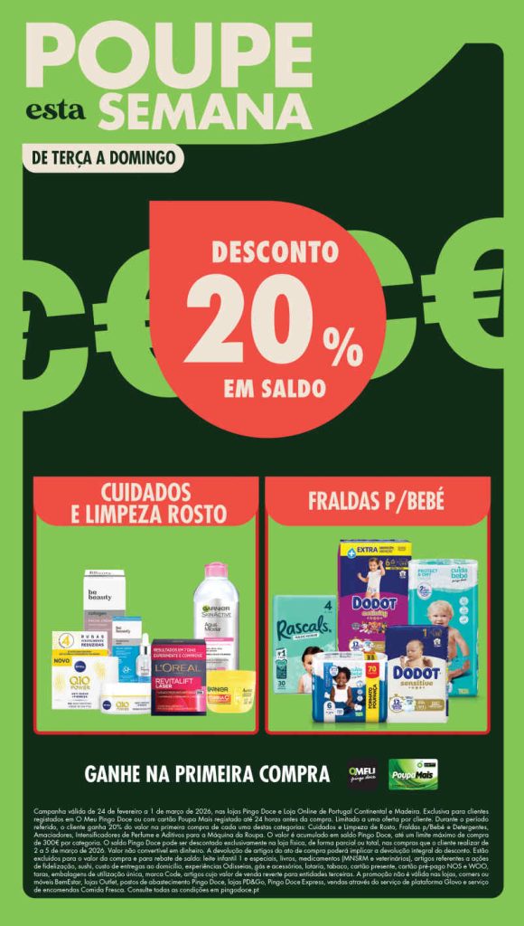 Esta semana de terça a segunda novas promoções e descontos. Folheto Pingo Doce 24 fevereiro a 2 março,