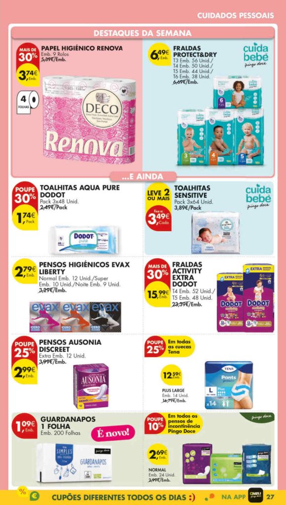 Antevisão folheto Pingo Doce nas lojas menor dimensão com descontos e promoções diretos. Aproveite todas as novidades em primeira mão para poupar ainda mais em frescos, mercearia, limpeza. Use a app My Pingo Doce para acumular no seu orçamento. Consultem os Folhetos. Todo o Folheto Abaixo!🛒