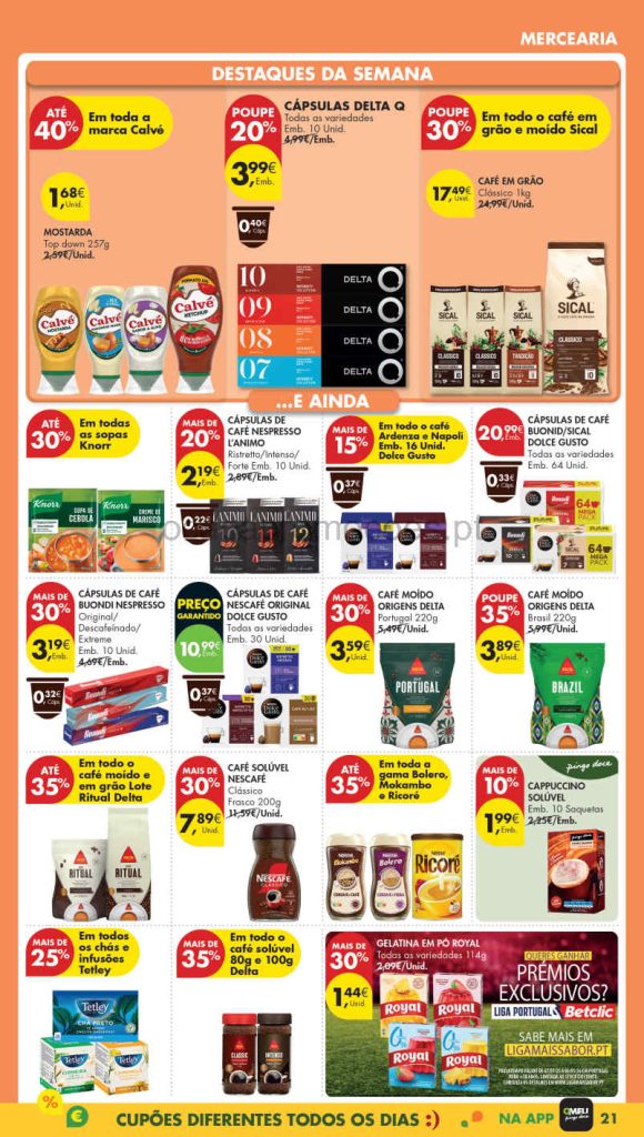 Os descontos para aproveitar. Muitas novidades nas categorias alimentar e bazar esta semana. Tudo para o orçamento familiar. O site O Caça Promoções está permanentemente atualizado em exclusivo com a informação que realmente interessa. Consultem os Folhetos. Todo o Folheto Abaixo!🎯