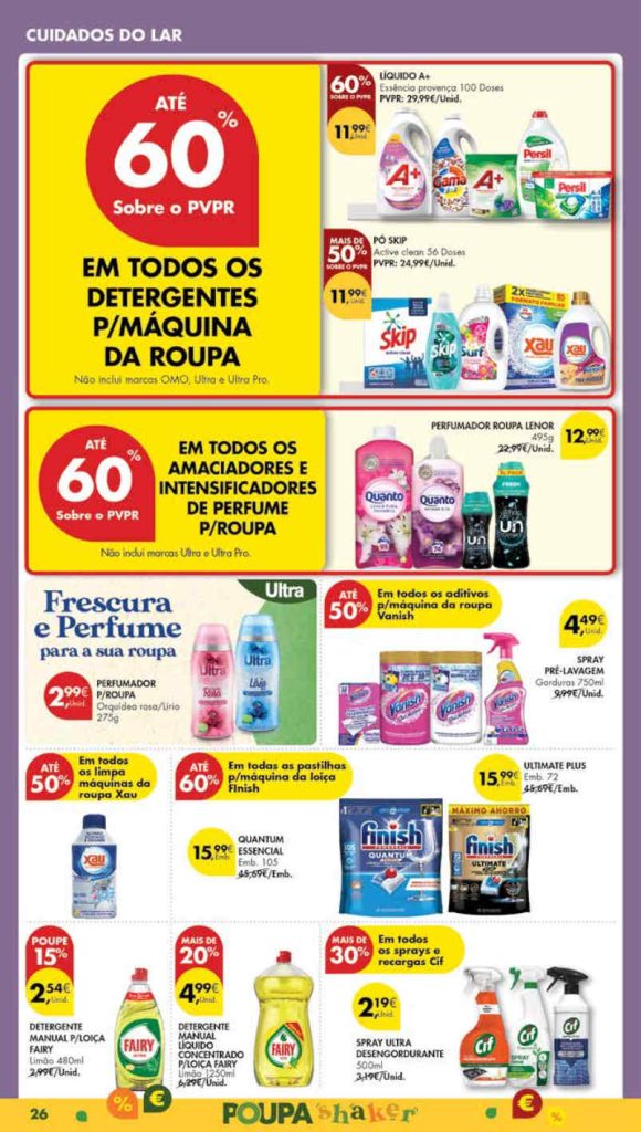 Até 60% em todos os detergentes para a máquina da roupa e mais,