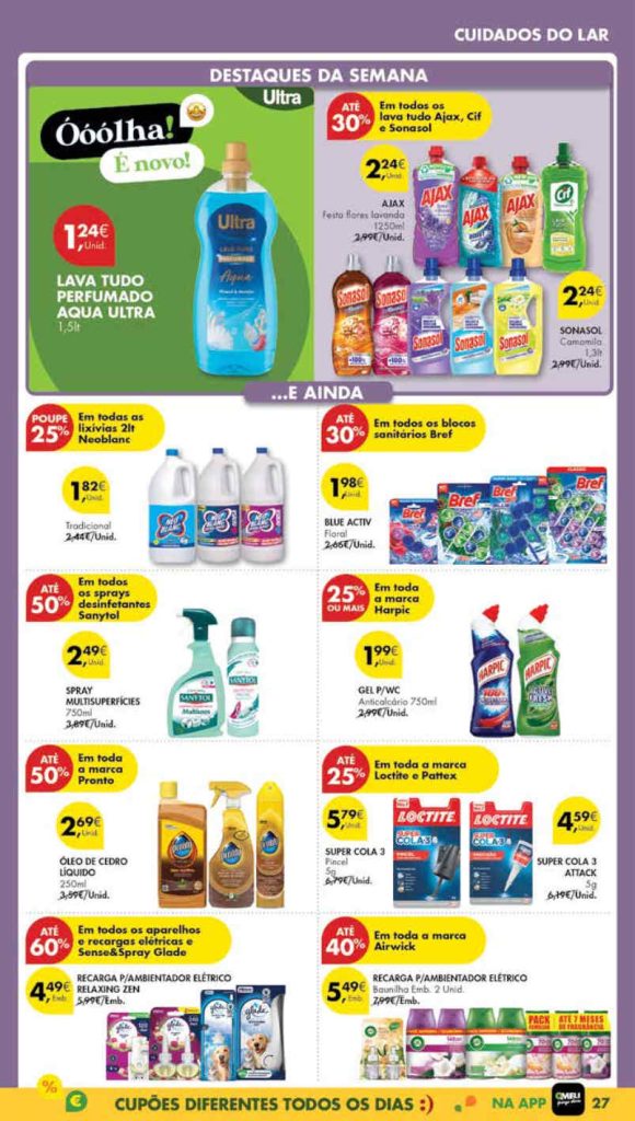 Os descontos para aproveitar. Muitas novidades nas categorias alimentar e bazar esta semana. Tudo para o orçamento familiar. O site O Caça Promoções está permanentemente atualizado em exclusivo com a informação que realmente interessa. Consultem os Folhetos. Todo o Folheto Abaixo!🎯