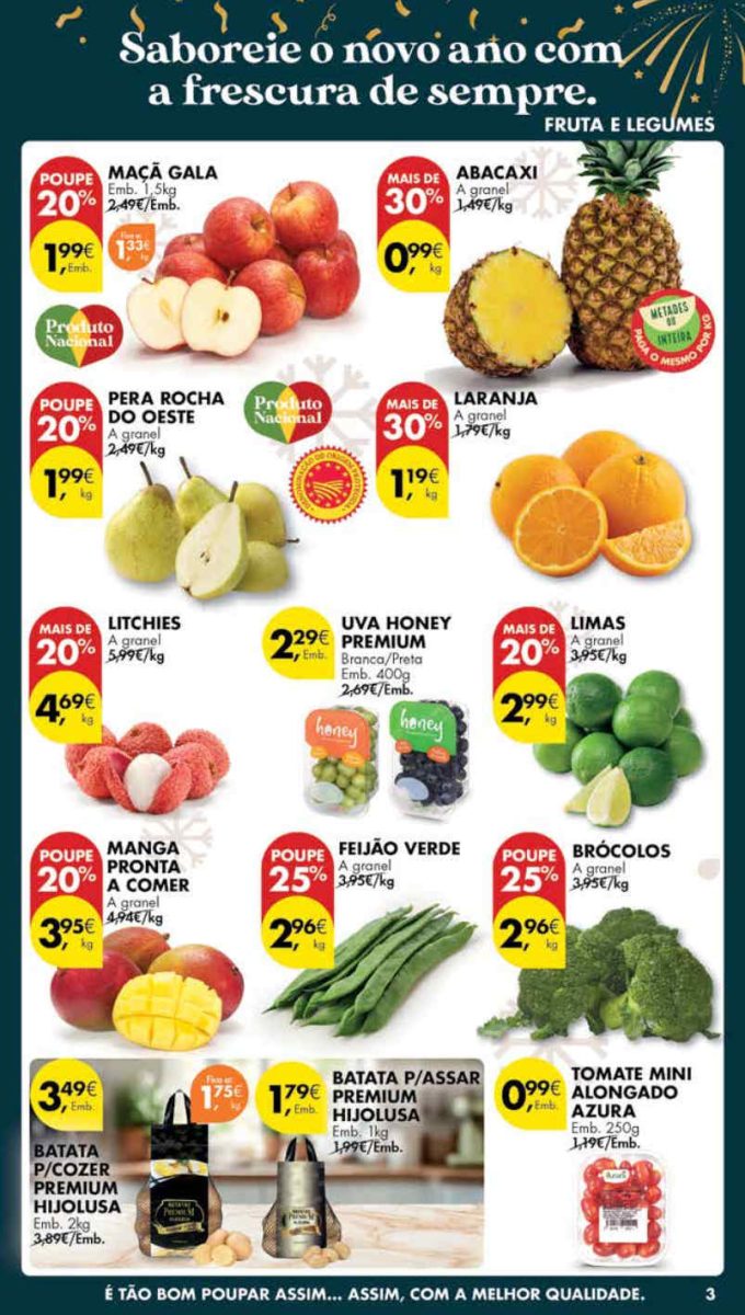 Antevisão folheto PINGO DOCE Madeira. ?☺️As promoções alimentar e bazar. Tudo para o Ano Novo nas várias categorias. ? 50% desconto em todos os brinquedos, batatas fritas GOURMET LAYS a 1,59€/unidade, passa de uva PINGO DOCE a 0,99€/unidade, feijão verde a 2,96€/kg, posta de salmão a 10,88€/kg e mais para o carrinho de compras nestes hipermercados para a vossa consoada. Muito bazar. Aproveitem e Bom Ano! Todo o Folheto Abaixo!??