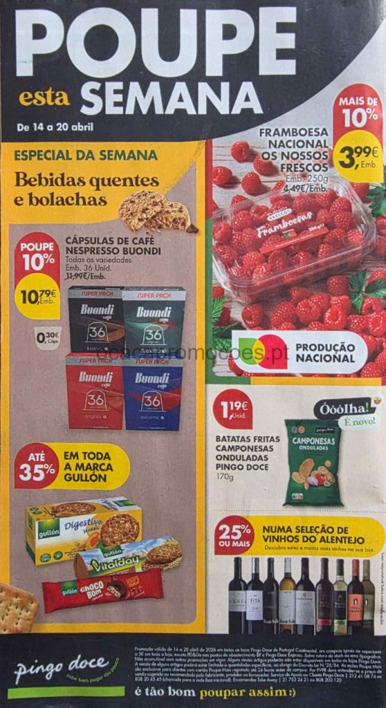 O folheto Pingo Doce sempre em primeira mão só aqui no site O Caça Promoções. Novas oportunidades extra de poupar no orçamento familiar. Novo bazar nas várias categorias até 50%, frescos com destaque para a produção nacional, especial bolachas e bebidas quentes, entre outras oportunidades. Consultem os Folhetos. 🎯