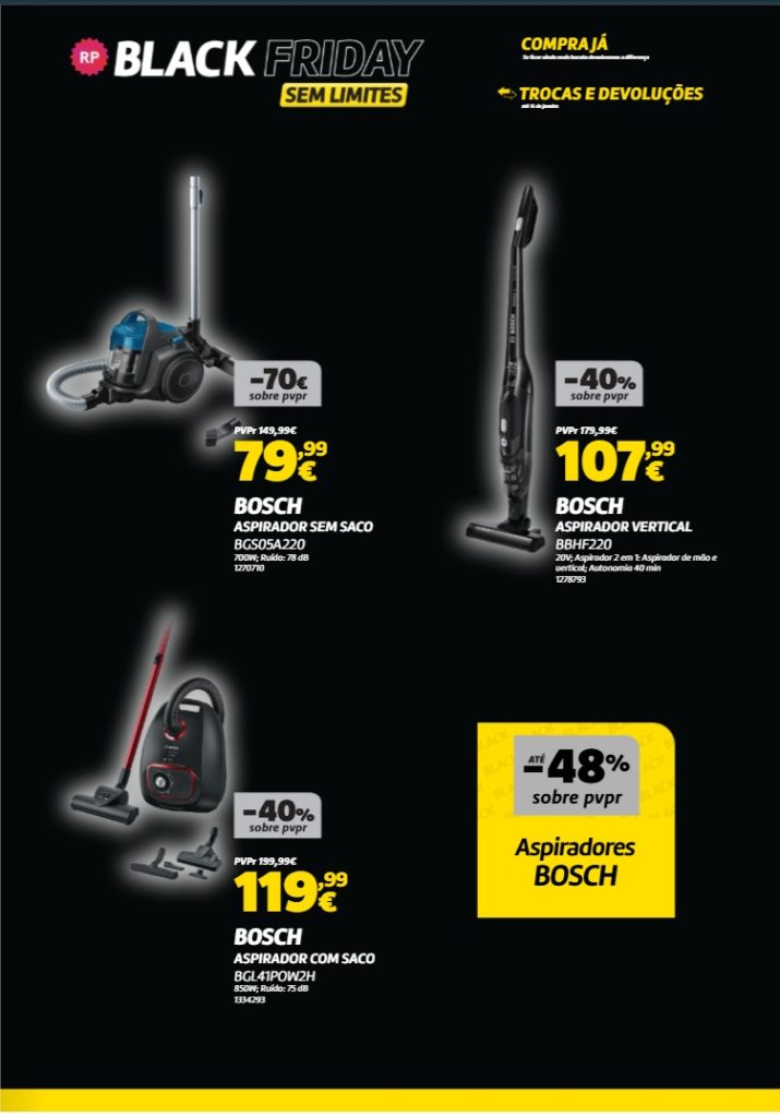 Aspirador com saco Bosh a 199,99€ unidade e mais,