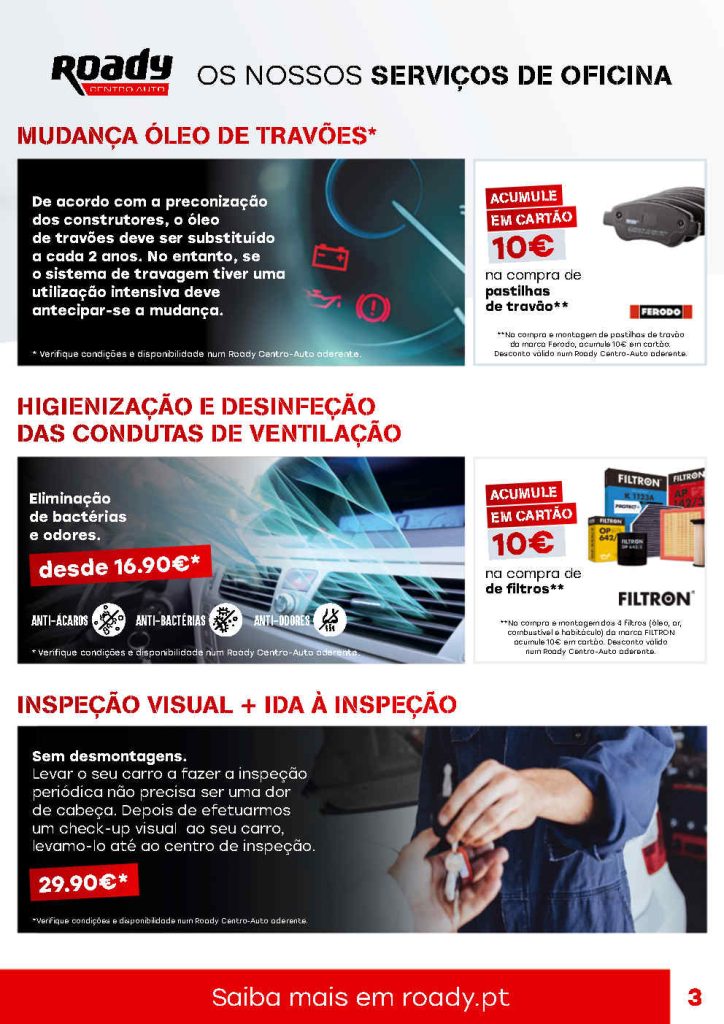 Cá estão os novos descontos em reparação, manutenção e cuidados mobilidade nos centro auto ROADY. Usem o cartão ROADY e a cada 250€ recebem 10€ desconto. Boas viagens para todos neste Inverno, vão e venham sempre em segurança. Todas as ofertas sempre aqui no site. Consultem os Folhetos. A Antevisão Folheto!🛒