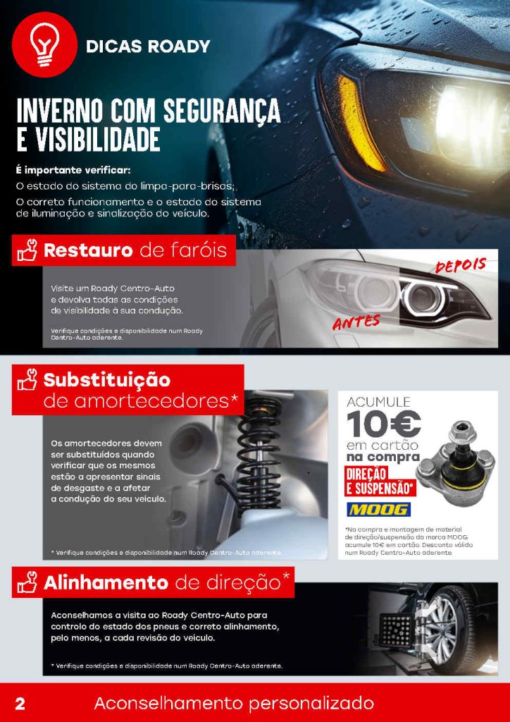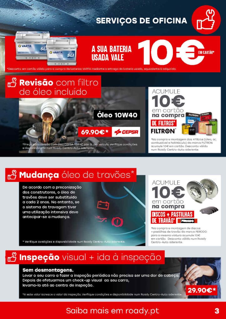 Os novos descontos e promoções em reparação, manutenção e cuidados mobilidade nos centro auto ROADY. Usem o cartão ROADY e a cada 250€ recebem 10€ desconto. Boas viagens para todos este Inverno, vão e venham sempre em segurança. Todas as ofertas sempre aqui no site. Consultem os Folhetos. A Antevisão Folheto!🛒