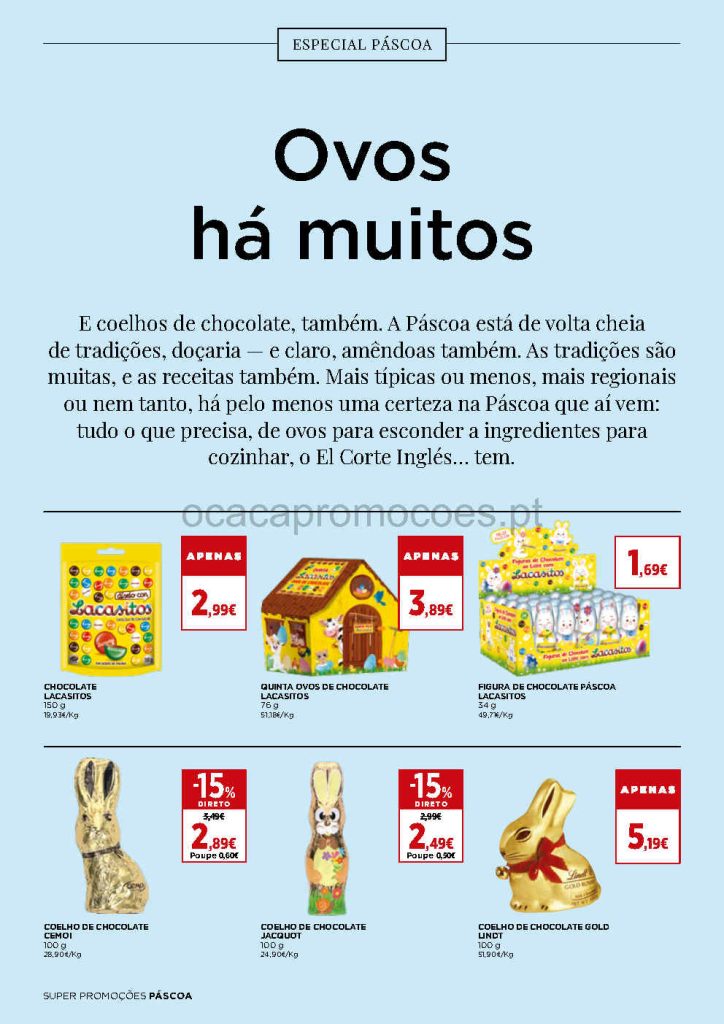As Promoções e descontos incluindo Páscoa. Atenção ao preço por kg. Compare sempre os mais de 100 artigos até 50% . Todas as ofertas El Corte Inglés estão aqui no O Caça Promoções, atualizado permanentemente com todas noticias e novidades para poupar diariamente. Consultem os Folhetos. A Antevisão Folheto!🎯