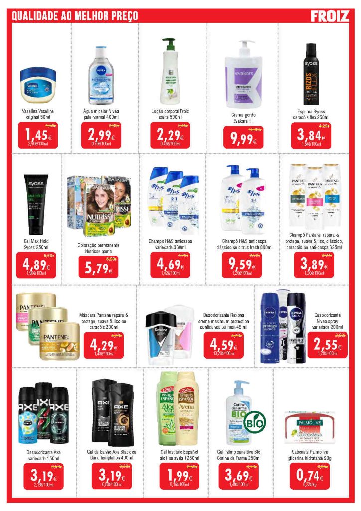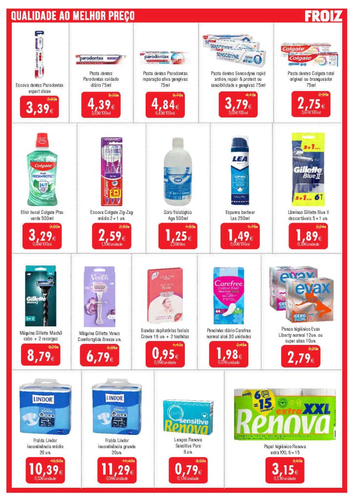 Destacam-se reduções em frescos, congelados e higiene pessoal. Folheto Supermercados Froiz 23 janeiro a 11 fevereiro,
