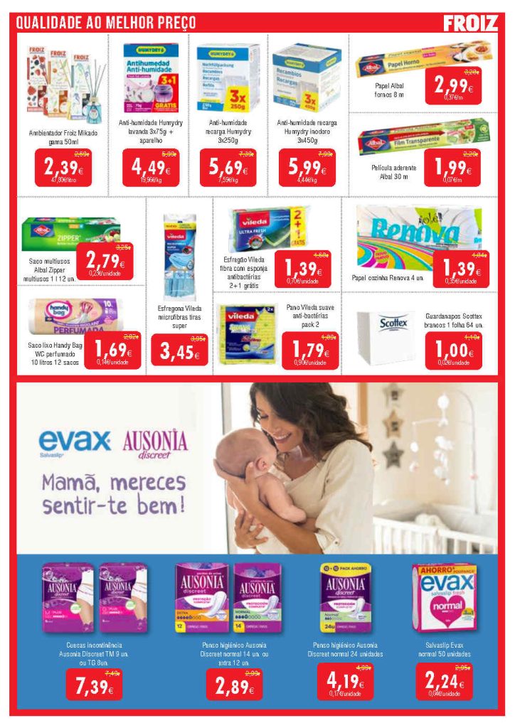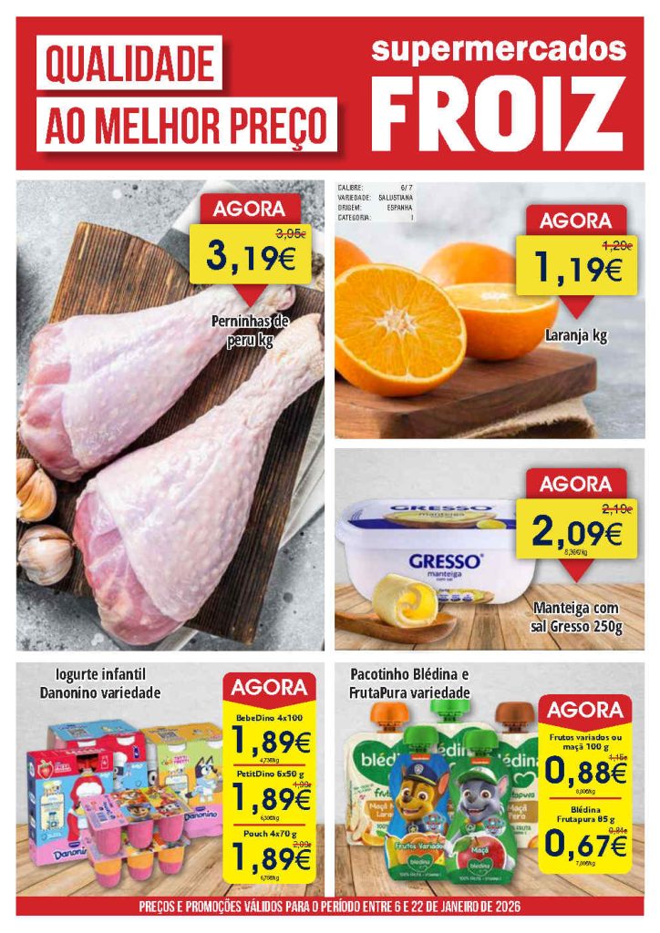 Destacam-se reduções em frescos, congelados e higiene pessoal. Folheto Supermercados Froiz 6 a 22 de janeiro,