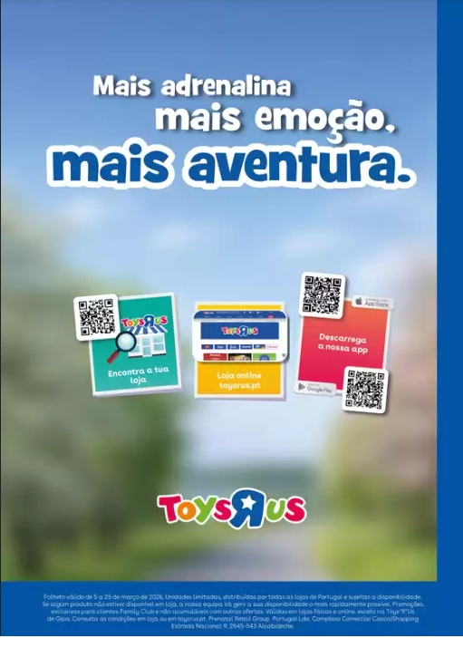Promoções o mês da aventura. Folheto Toys R Us 7 a 25 de março,