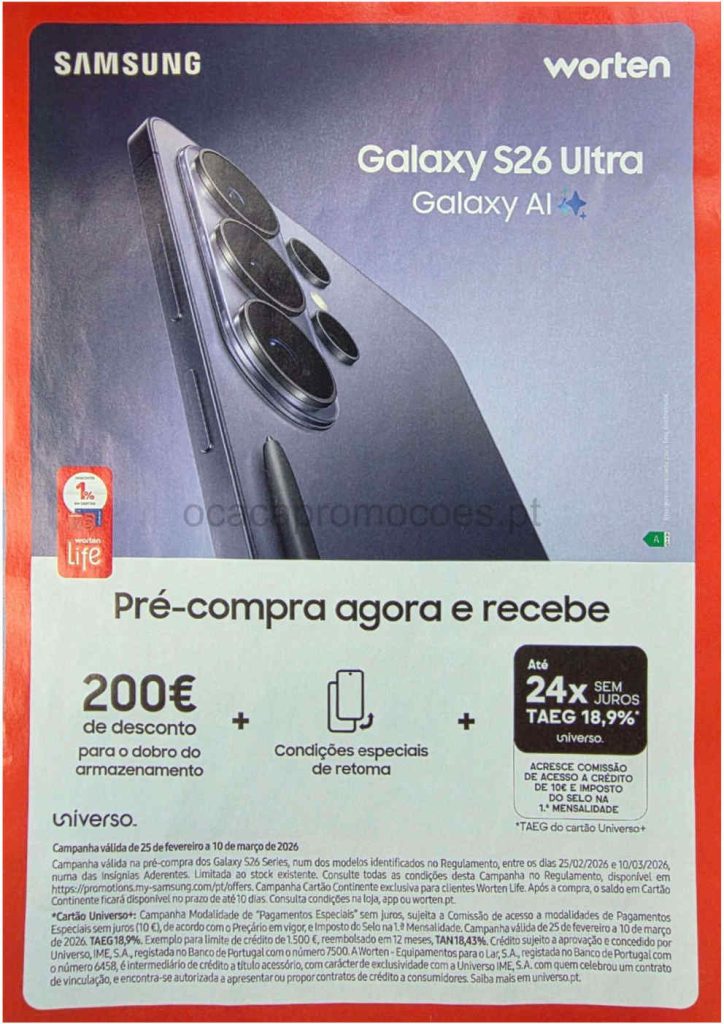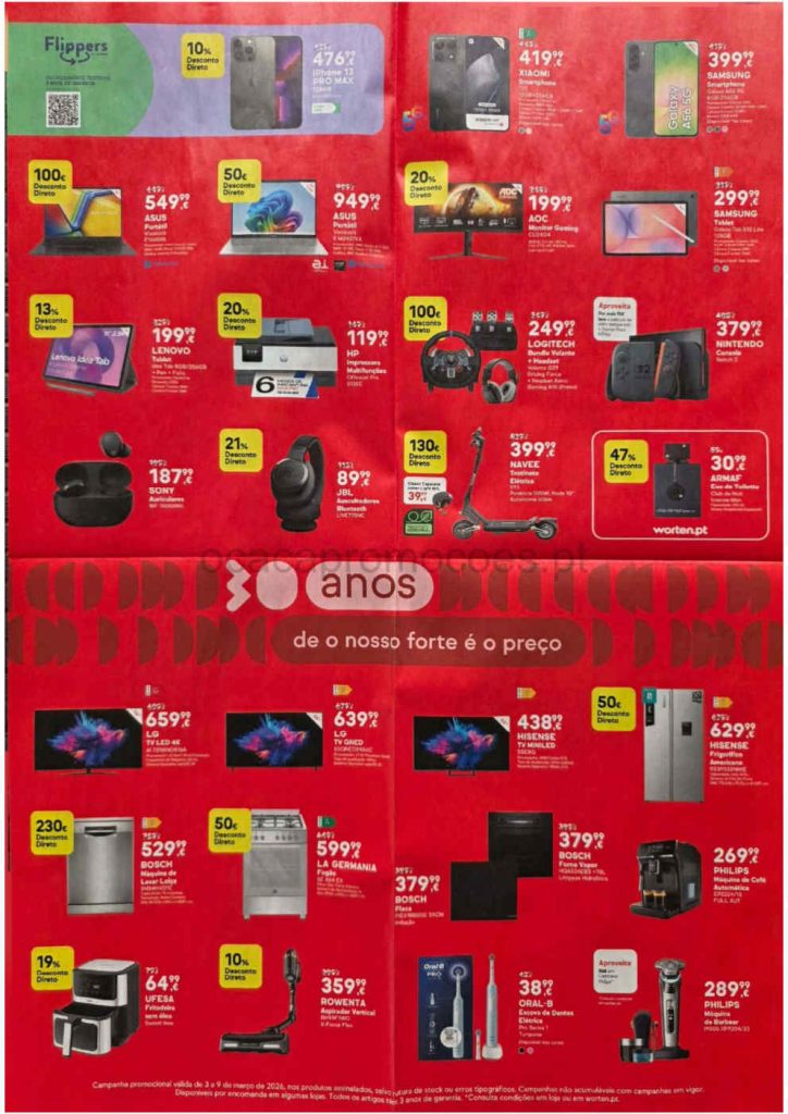 Exclusivo. Worten com promoções e descontos ( até em cartão Continente ) nas várias categorias para comparar e poupar em grandes marcas. Preço mínimo garantido e o especial 30 anos. Ofertas com stock limitado. Aproveitem para acumular e façam a lista. Inclui ainda o folheto temático Samsung S26. Consultem os Folhetos. A Antevisão Folheto!🎯