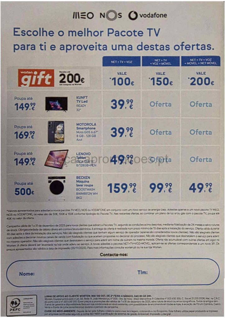O novo folheto mensal até fim do ano para comparar. Promoções e ofertas todo o mês de dezembro. As ofertas e promoções MEO, Vodafone, Nos, Galp, Yorn, Amigo e os tarifários. Os tarifários, pacotes fibra, ofertas AMIGO e mais. Existem packs com oferta Worten de um Tablet. Consultem os Folhetos. A Antevisão Folheto!🎯