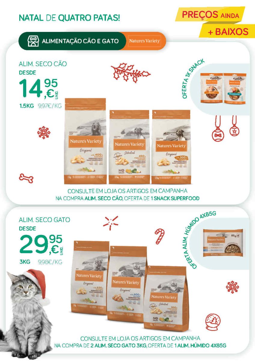 As novidades Natal e mais para os nossos pets. Comparem e acumulem com os desconto e promoções até 50%. Inclui bazar. ?? São brinquedos cão e gato a a partir de 4,79€, suplementos, rações, moda, resguardos, sacos higiénicos e mais. Ofertas, leve 3 pague 2, 15% desconto em cartão CONTINENTE, descontos diretos. Aproveitem e boas poupanças! Todo o folheto abaixo.??