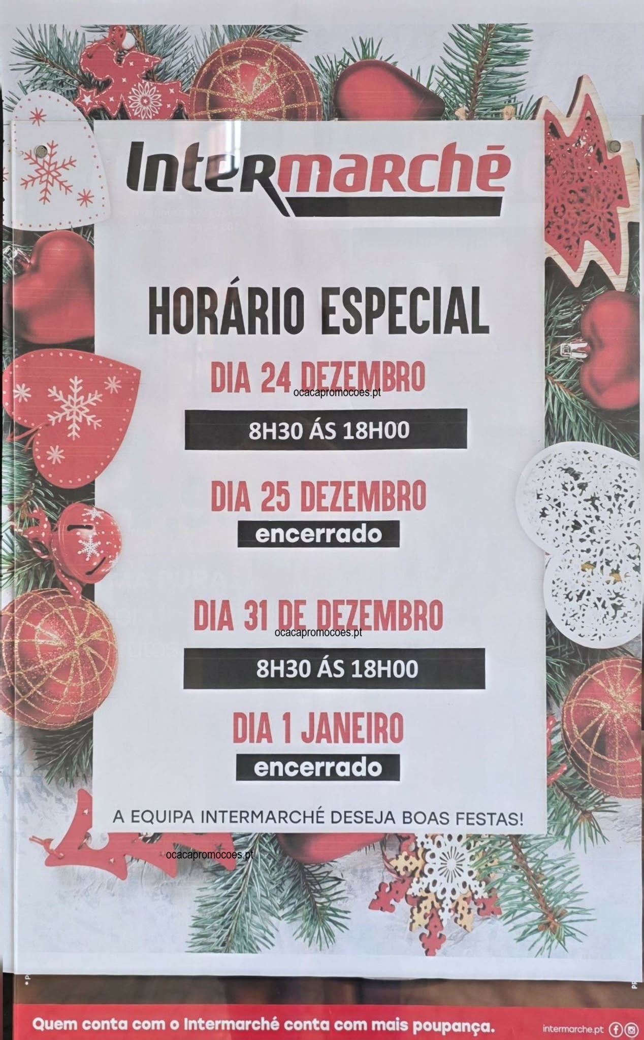 Já em antevisão para organizarem e agendarem 📅as vossas compras, Assim, nas vésperas festivas a 24 dezembro e 31 dezembro as lojas fecham pelas 18 horas. Dia 25 dezembro e 1 de janeiro as lojas estão encerradas. Aqui no site O Caça Promoções encontram sempre todas as antevisões em primeira mão. Disfrutem das épocas festivas … Continue a ler Intermarché: Este é o Horário das Lojas para o Natal e Ano Novo