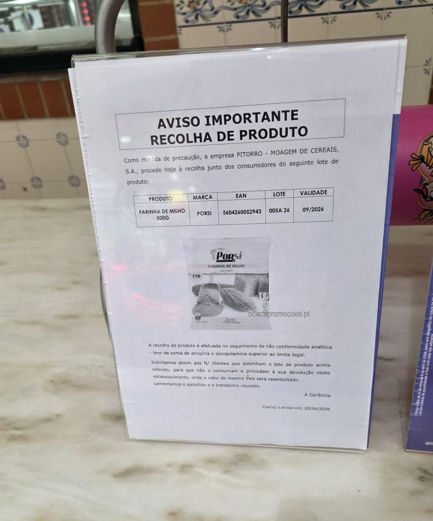 Foi emitido um aviso importante de recolha de produto numa loja Intermarché, referente à farinha de milho da marca Porsi.