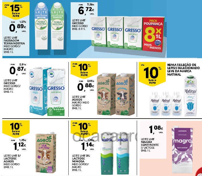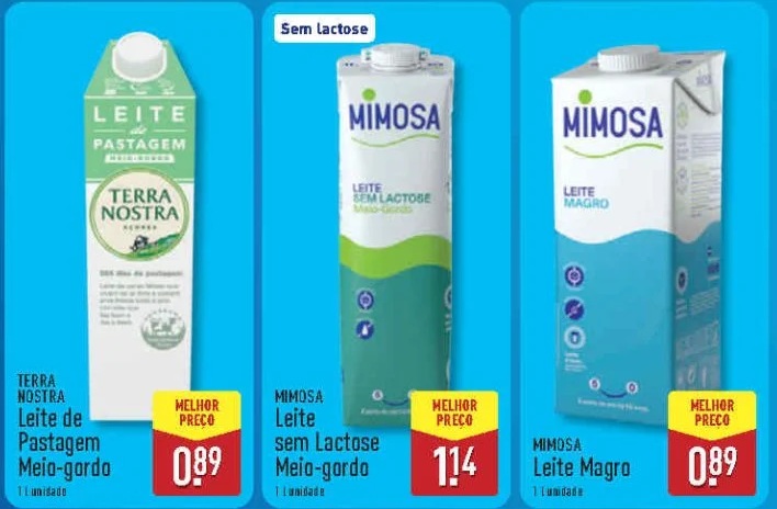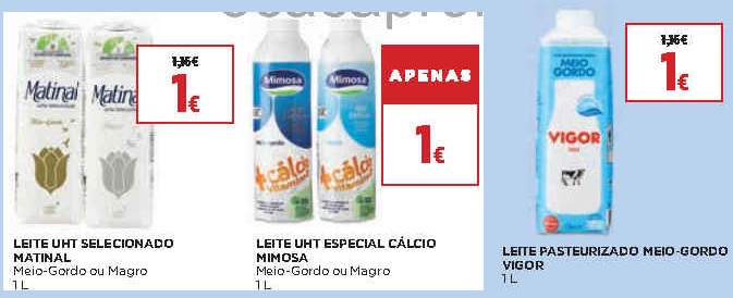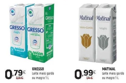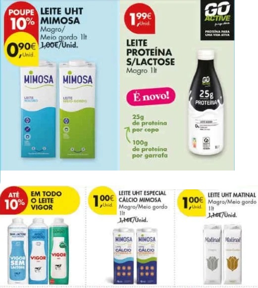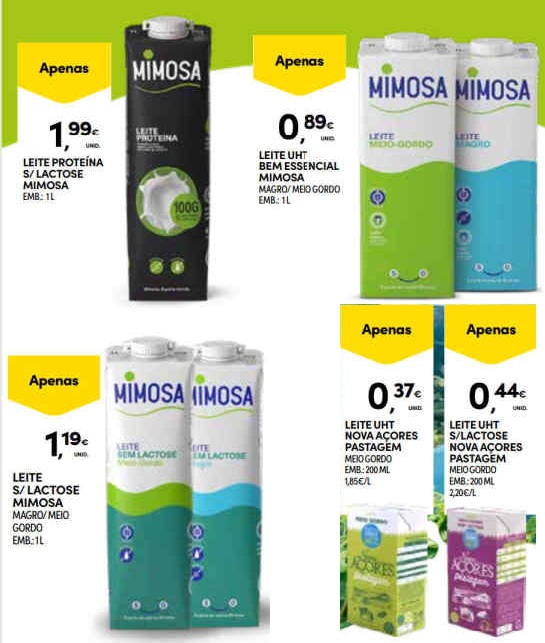 A comparação refere-se apenas aos leites presentes nos folhetos, podendo existir em loja outras opções a preços diferentes.