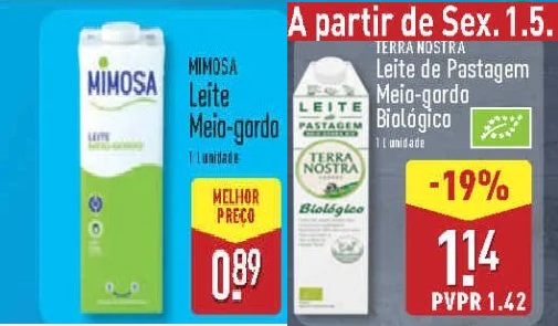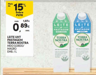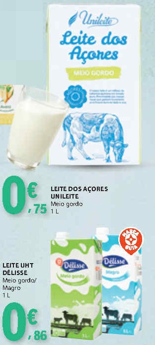 Esta semana, o supermercado A NOSSA LOJA destaca-se no preço do leite meio-gordo.