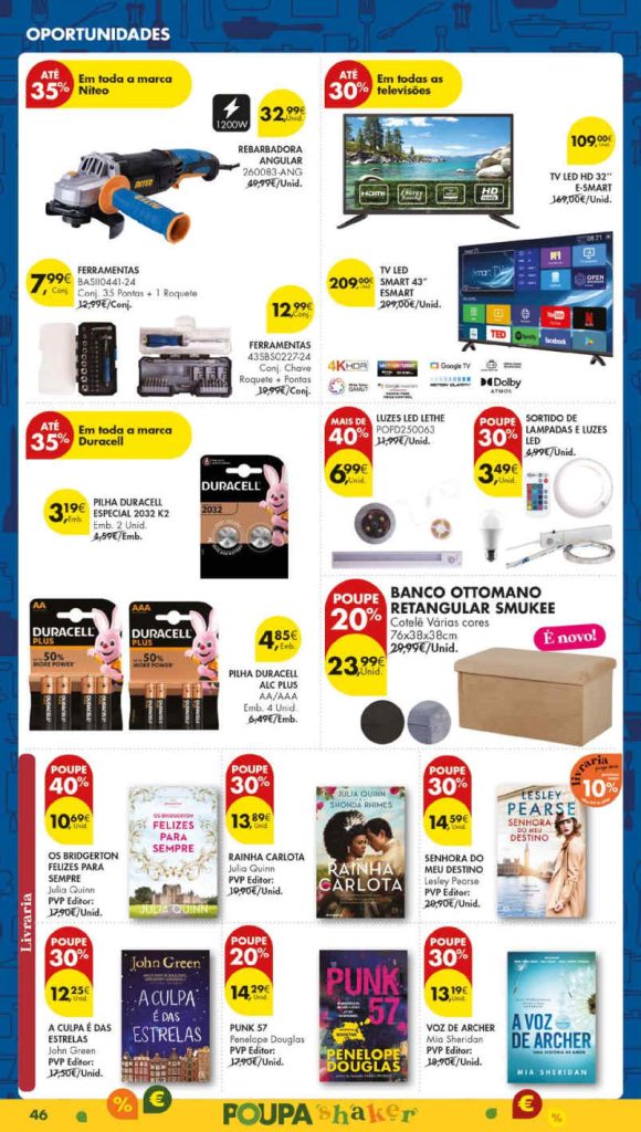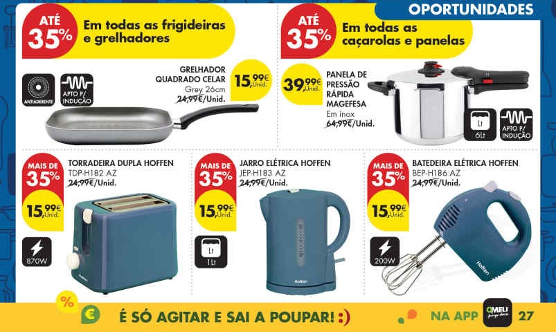 Equipe a sua casa ao melhor preço e se puder espere sempre pelo fim de semana e acumule com as ofertas que acumulam nessas datas. Poupa assim a sua carteira e otimiza o orçamento familiar. Bazar desde ferramentas Niteo, eletrodomésticos Hoffen para a cozinha, brinquedos no novo folheto temático e mais para o carrinho de compras. Consultem os Folhetos. Todo o Folheto Abaixo!🎯