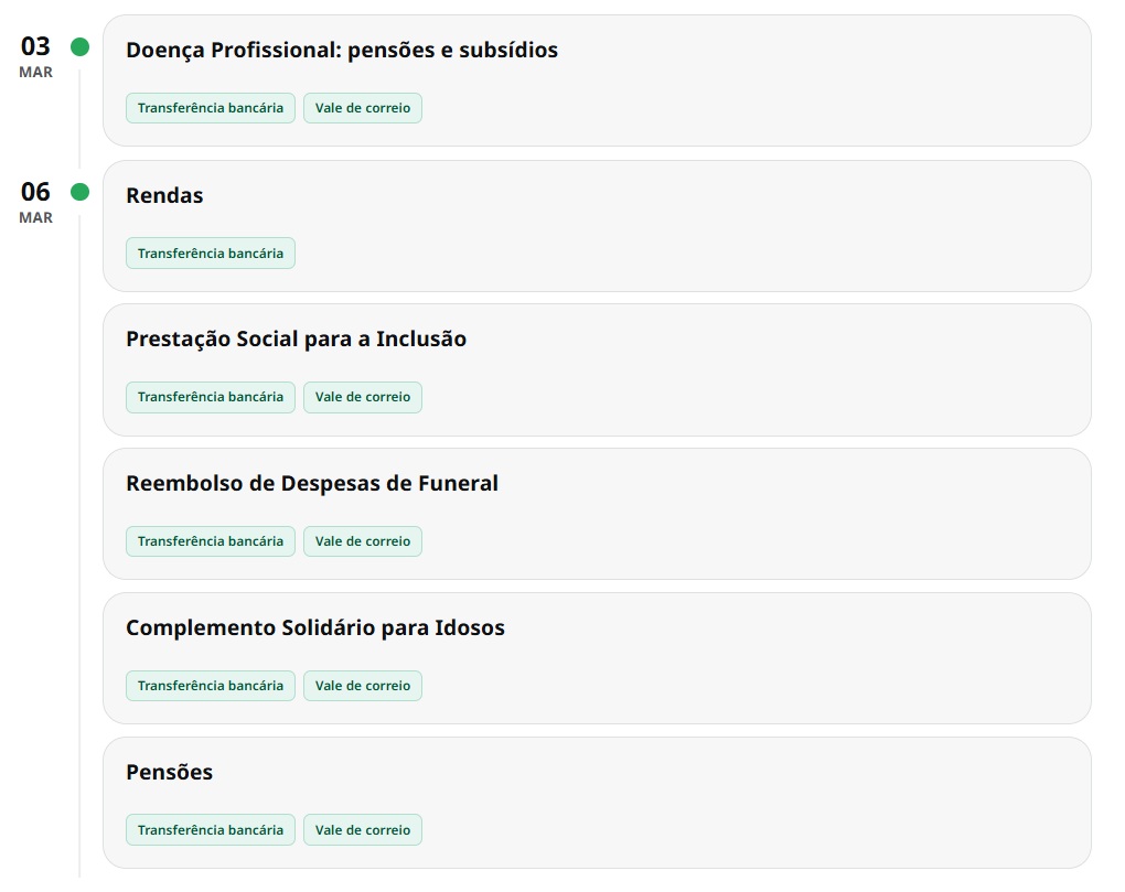 O calendário é atualizado para assim garantir que todos os beneficiários recebam os seus pagamentos a tempo. Os pagamentos para os dias úteis na semana 2 a 8 de março.📅