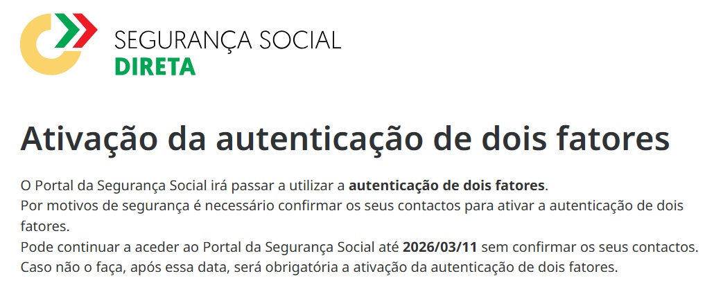 - Será obrigatório em breve: a autenticação com 2FA passará a ser obrigatória para todos os acessos que não sejam efetuados com a Chave Móvel Digital