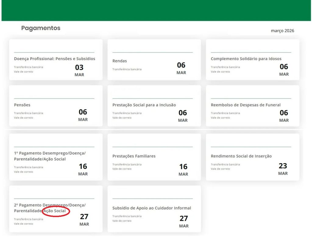 Datas de pagamento atualizadas Segurança Social.