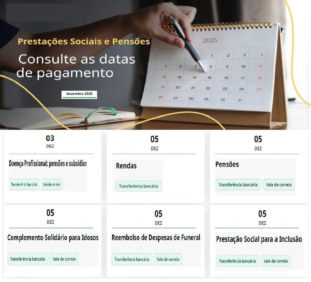 O calendário Segurança Social 📅 para o pagamento de subsídios sociais,