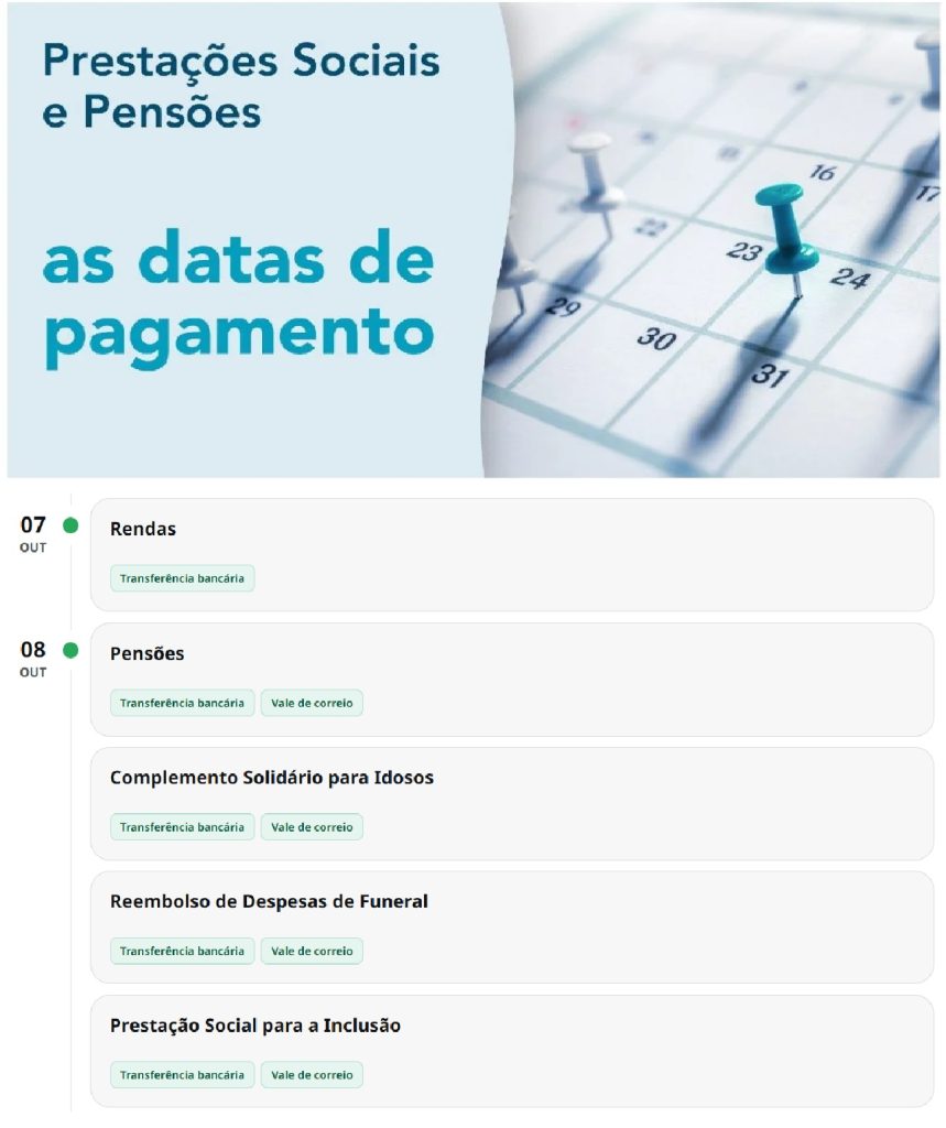 Este calendário é atualizado permanentemente para garantir que todos os beneficiários recebam os seus pagamentos a tempo. Os novos pagamentos para a semana 6 a 12 de outubro. Consulte ainda mais artigos Segurança Social aqui no site O Caça Promoções.📅